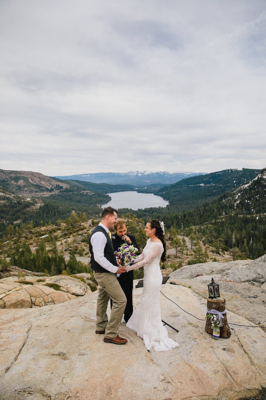 Betsy and Jordan held an amazing ceremony at the top of Donner Pass road high above Donner Lake. Their Truckee elopement proves that North Lake Tahoe is one of the most beautiful places on earth to get married! If you’re considering getting married in the Reno/Tahoe area think about eloping in Truckee or North Lake Tahoe! I’d be happy to recommend locations, officiants and other vendors to help you plan! Thank you to Betsy and Jordan for including me in your big day!